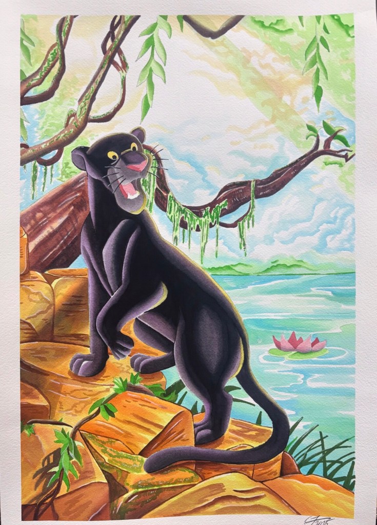 In honor of Disney festival of the arts. Which one day I hope to work. I decided to paint one of my favorite characters from one of my favorite movies of all time! It’s Bagheera! 13×19 watercolor on arches. If interested in purchasing let me know. I probably won’t do prints sssoooo only the original will be available.